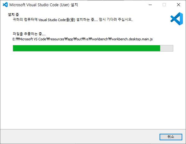 2.4 VSCode 설치 진행이 완료되면, 종료 버튼을 클릭