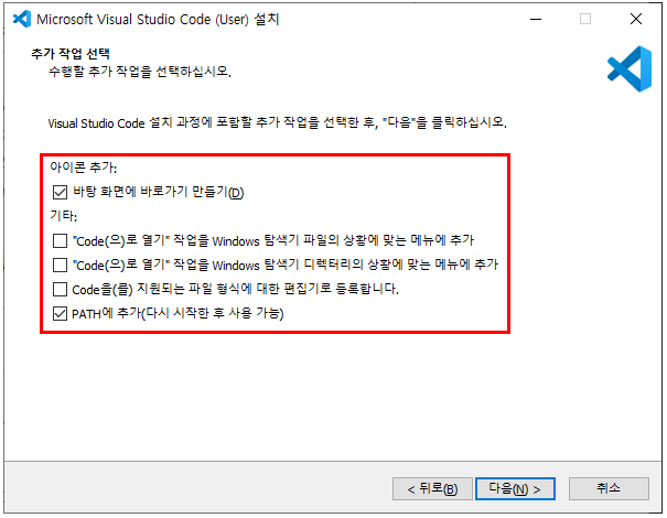 - VSCode 사용상 편의를 위해, 옵션으로 체크해서 설정함