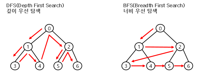 - 그래프에서 시작점 노드 기준으로 인접한 노드부터 탐색하는 알고리즘입니다.