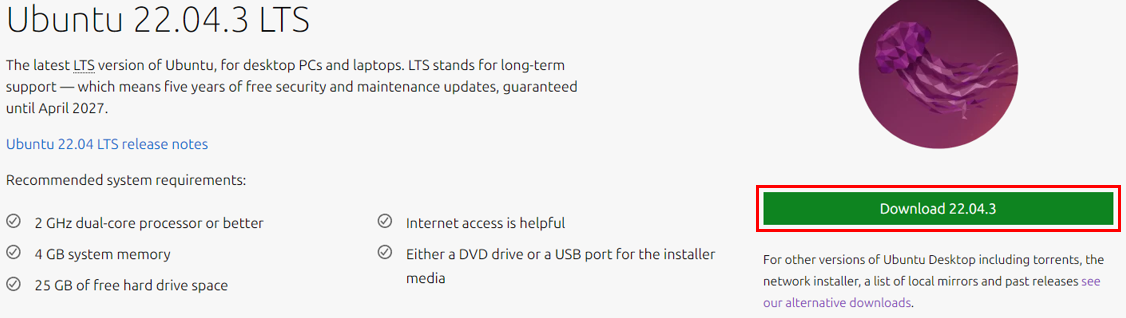 Ubuntu 22.04 LTS (Jammy Jellyfish) iso 파일을 다운받는 방법에 대해 알아보겠습니다.