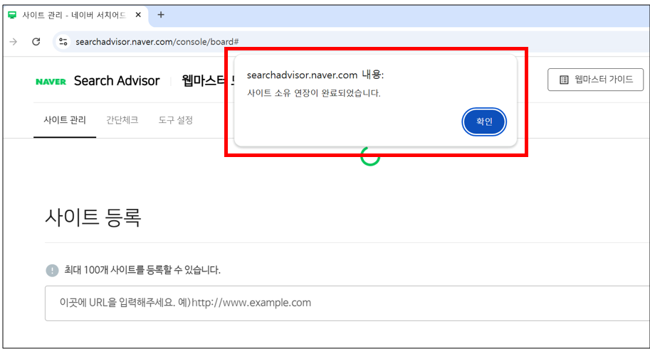 5. 사이트 소유 연장 완료