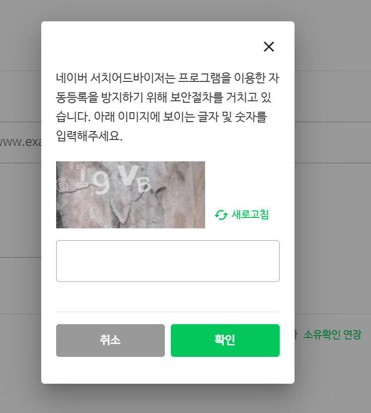 4. 네이버 서치어드바이저에서 자동등록 방지를 위해 보안절차 진행