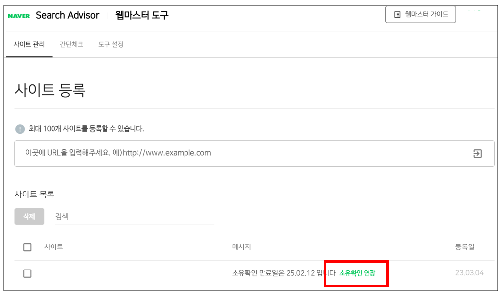 네이버 서치어드바이저 소유확인이 만료되기 전에 소유확인을 연장해야 합니다.
