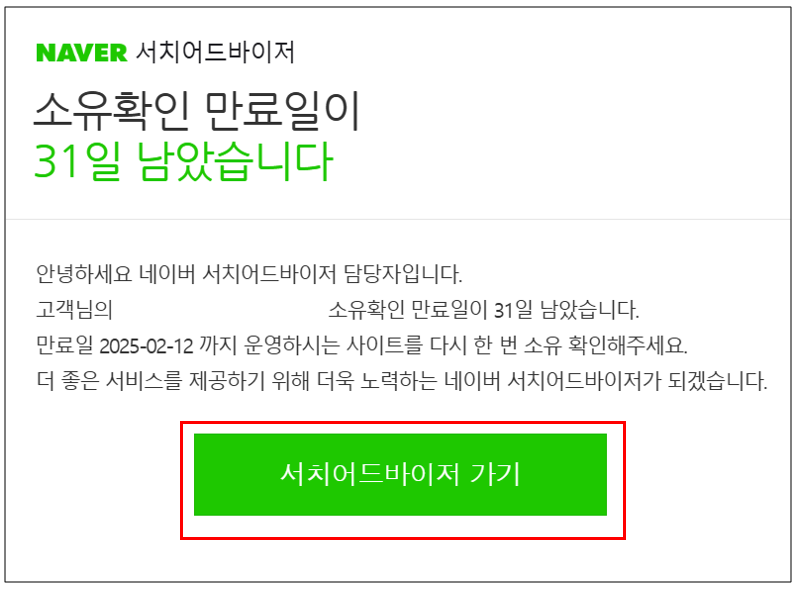 1. 메일에서 "NAVER 서치어드바이저 소유확인 만료일 공지" 확인